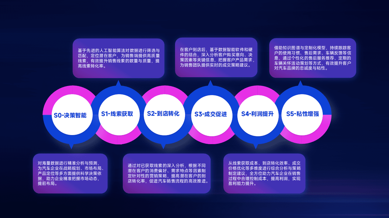 通过拓宽潜在客户来源、、优化线索分配并提高到店转化率,,,,以增强销售效率。。。同时,,,,利用线索数据不断优化分析模型,,有效提升转化率,,扩大营销影响力。。。。